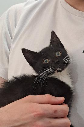 SOYA, 2 mois et demi révolus, est une adorable chatonne noire et blanche, à la robe soyeuse, petite bouille d'amour proche de l'humain, qui cherche sa protection, le jeu, le contact.