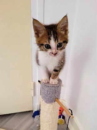 Unix a été récupéré par la fourrière avec ses 2 soeurs et son frère mais sans aucune trace de la maman. Notre association a été sollicitée et nous avons pris en charge cette petite portée de chatons. Après une visite chez le vétérinaire et grâce aux bons soins de sa famille d'acceuil, Unix est désormais plein d'énergie.
