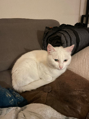 En raison de sa couleur, il vaut mieux éviter de la laisser sortir les jours de grands soleil à cause des risques de cancer des oreilles. Mais pour avoir vécu dans la rue, elle aura besoin d'un petit extérieur.