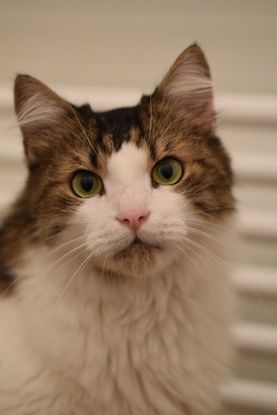 Oslo ronronne même avant qu’on ne le caresse ! Il n’hésitera pas à vous montrer son beau bidou tout blanc pour que vous cédiez à la tentation. Attention cependant à ne pas confondre son “fluff” naturel à celui d’une peluche, Oslo sait très bien vous faire comprendre qu’il souhaite être tranquille de temps à autre. Une fois en confiance, c’est un chat affectueux en demande d’attention. Il adore être grattouillé et est un vrai gourmand ! Oslo tolère les chats, ne connait pas les chiens, et ne convient pas aux enfants en bas-âge.