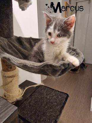 MARCUS est un chaton câlin et très gourmand. Il pourra tout à fait vivre dans un foyer avec enfants.