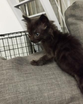 Il a la particularité d'avoir le poil un peu plus long que ses soeurs et d'avoir des poils blanc derrière les oreilles , ce qui le rend craquant.