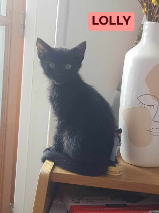 Petite minette toute noire, encore craintive mais qui adore jouer.