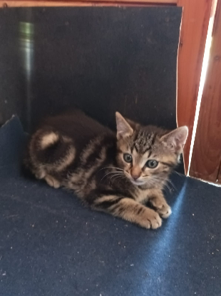Il vit actuellement dehors et aura besoin d'un temps d'adaptation. Lorsqu'il est à l'aise, il s'avère être un petit chaton très bien dans ses pattes, très câlin et sociable.
