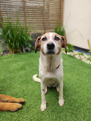 Abyss est une petite chienne qui a 11 ans et qui pèse 14 kilos. Elle est de taille moyenne. Elle est en parfaite santé et à un cœur de jeune fille ! Elle est actuellement sur l'île de la Réunion mais arrive chez Erka le 30 juin.