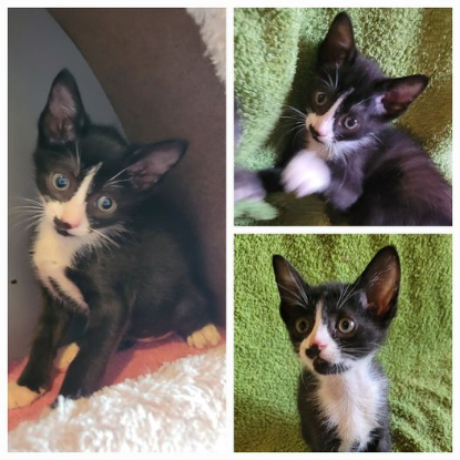 Jeune chatonne femelle noire et blanche d'environ 9 semaines. Issue de la portée d' une chatte errante, elle et sa fratrie ont été récupérées, malheureusement, la maman sauvage n' a pas encore pu être capturée malgré nos nombreuses tentatives. Una est une chatonne gourmande, câline et joueuse. Craquerez vous pour son joli minois ? Visible sur Pompiac chez Magali. Adoptable sous contrat associatif contre remboursement des frais vétérinaires. FRAIS D'ADOPTION : • 160€ identification, primo vaccination, anti parasite interne et externe, La stérilisation est obligatoire et incluse dans le tarif d'adoption.