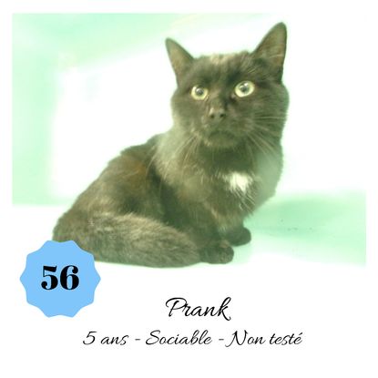 URGENCE EUTHANASIE ! Prank est un matou de 5 ans sociable qui vous attend dans une fourrière du 56. ATTENTION SORTIE AU PLUS TARD LE 1/11/2019 (avant euthanasie) ! Pour adopter, c'est facile : ➡️ On se rend sur la page facebook d'Urgence Fourrière de Bretagne (UFB) -> https://www.facebook.com/sosfourrieresbreizh/ ➡️ On vient en message privé sur la page UFB ➡️ On remplit le questionnaire ➡️ Si le questionnaire est validé, on se rend disponible pour la pré-visite ➡️ On se rend aussi disponible pour venir chercher le loulou en fourrière Les chats sortent de fourrière primo-vaccinés et identifiés. Restera à charge de l’adoptant le rappel de vaccin et la stérilisation qui est OBLIGATOIRE. Les femelles en fourrière ayant été trouvées dans la rue, il y a fort à parier que nombre d'entre elles en âge de l'être soient gestantes ... ---- A PROPOS D'URGENCE FOURRIERE DE BRETAGNE (UFB) Nous sommes un COLLECTIF d'ASSOCIATIONS DE PROTECTION ANIMALE (qui rassemble notamment Moustaches et Compagnie, Bêtes de Scène, les Pachas, Chats Libres de Berné, etc, etc....) Le BUT de ce collectif d'associations est donc de SORTIR ces animaux des fourrières surchargées en les faisant ADOPTER de manière LEGALE par des familles ou en leur trouvant des FAMILLES D'ACCUEIL lorsque des places en association se libèrent.