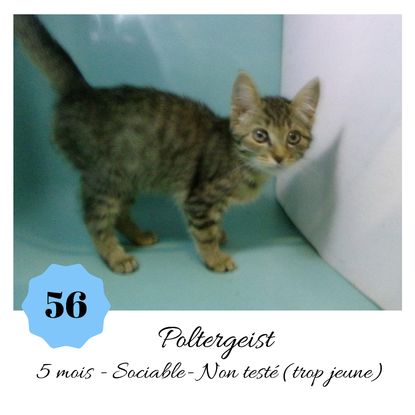 URGENCE EUTHANASIE ! Poltergeist est un matou de 5 mois sociable qui vous attend dans une fourrière du 56. ATTENTION SORTIE AU PLUS TARD LE 1/11/2019 (avant euthanasie) ! Pour adopter, c'est facile : ➡️ On se rend sur la page facebook d'Urgence Fourrière de Bretagne (UFB) -> https://www.facebook.com/sosfourrieresbreizh/ ➡️ On vient en message privé sur la page UFB ➡️ On remplit le questionnaire ➡️ Si le questionnaire est validé, on se rend disponible pour la pré-visite ➡️ On se rend aussi disponible pour venir chercher le loulou en fourrière Les chats sortent de fourrière primo-vaccinés et identifiés. Restera à charge de l’adoptant le rappel de vaccin et la stérilisation qui est OBLIGATOIRE. Les femelles en fourrière ayant été trouvées dans la rue, il y a fort à parier que nombre d'entre elles en âge de l'être soient gestantes ... ---- A PROPOS D'URGENCE FOURRIERE DE BRETAGNE (UFB) Nous sommes un COLLECTIF d'ASSOCIATIONS DE PROTECTION ANIMALE (qui rassemble notamment Moustaches et Compagnie, Bêtes de Scène, les Pachas, Chats Libres de Berné, etc, etc....) Le BUT de ce collectif d'associations est donc de SORTIR ces animaux des fourrières surchargées en les faisant ADOPTER de manière LEGALE par des familles ou en leur trouvant des FAMILLES D'ACCUEIL lorsque des places en association se libèrent.