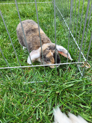 Rex est un lapin mâle, Tricolore, vacciné et qui sera castré prochainement.