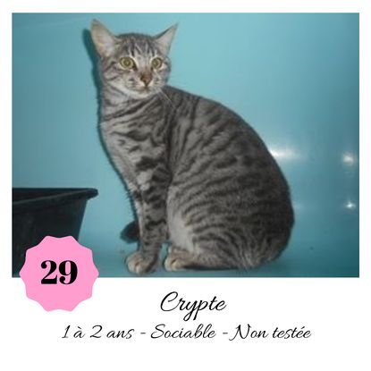 URGENCE EUTHANASIE ! Crypte est une minette de 1-2 ans sociable qui vous attend dans une fourrière du 29. ATTENTION SORTIE AU PLUS TARD LE 1/11/2019 (avant euthanasie) ! Pour adopter, c'est facile : ➡️ On se rend sur la page facebook d'Urgence Fourrière de Bretagne (UFB) -> https://www.facebook.com/sosfourrieresbreizh/ ➡️ On vient en message privé sur la page UFB ➡️ On remplit le questionnaire ➡️ Si le questionnaire est validé, on se rend disponible pour la pré-visite ➡️ On se rend aussi disponible pour venir chercher le loulou en fourrière Les chats sortent de fourrière primo-vaccinés et identifiés. Restera à charge de l’adoptant le rappel de vaccin et la stérilisation qui est OBLIGATOIRE. Les femelles en fourrière ayant été trouvées dans la rue, il y a fort à parier que nombre d'entre elles en âge de l'être soient gestantes ... ---- A PROPOS D'URGENCE FOURRIERE DE BRETAGNE (UFB) Nous sommes un COLLECTIF d'ASSOCIATIONS DE PROTECTION ANIMALE (qui rassemble notamment Moustaches et Compagnie, Bêtes de Scène, les Pachas, Chats Libres de Berné, etc, etc....) Le BUT de ce collectif d'associations est donc de SORTIR ces animaux des fourrières surchargées en les faisant ADOPTER de manière LEGALE par des familles ou en leur trouvant des FAMILLES D'ACCUEIL lorsque des places en association se libèrent.
