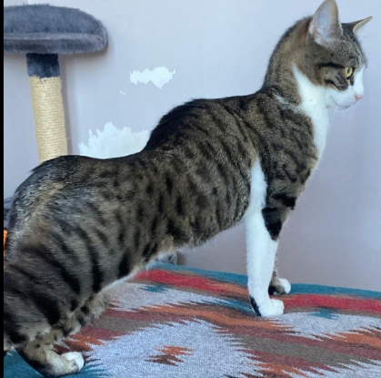 Elle est donc craintive mais caline, elle est joueuse, surtout avec les autres chats. Elle aime dormir dans des endroits douillets et profiter du soleil devant la baie vitrée.