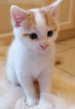 Uri notre petit roux et blanc est un gros goulu, frondeur, téméraire, n'a peur de rien, très curieux, qui irait déjà bien se promener dehors !! Un accès à l'extérieur serait donc un gros plus pour notre chaton. Il est sociable et ok chat ok chien (surtout pour faire la sieste, preuve en photo), ok enfant, ok adulte