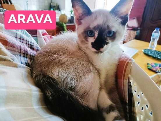 ARAVA petite typée siamoise très joueuse et câline. Souvent complice avec sa soeur REVA.