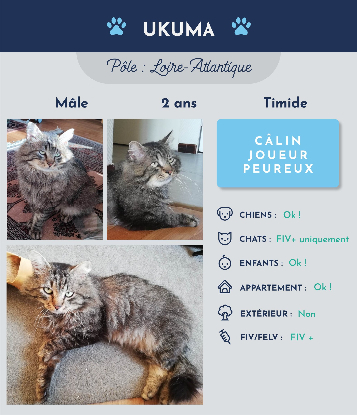 À l'avenir, j'aimerais être adopté dans un espace avec balcon ou un jardin grillagé ; comme je suis FIV, je ne pourrai jamais sortir librement.