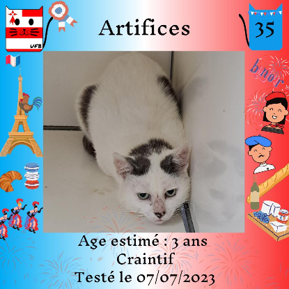 Artifices, mâle de 3 ans craintif (un comportement normal en fourrière) qui vous attend dans une fourrière du 35. ATTENTION SORTIE AU PLUS TARD LE 14/07/2023 (avant euthanasie) !