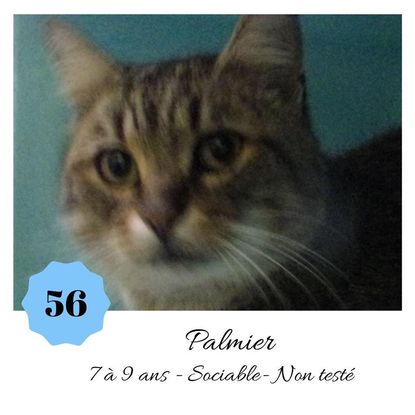 URGENCE EUTHANASIE ! Palmier est un matou de 7-9 ans sociable qui vous attend dans une fourrière du 56. ATTENTION SORTIE AU PLUS TARD LE 8/11/2019 (avant euthanasie) ! Pour adopter, c'est facile : ➡️ On se rend sur la page facebook d'Urgence Fourrière de Bretagne (UFB) -> https://www.facebook.com/sosfourrieresbreizh/ ➡️ On vient en message privé sur la page UFB ➡️ On remplit le questionnaire ➡️ Si le questionnaire est validé, on se rend disponible pour la pré-visite ➡️ On se rend aussi disponible pour venir chercher le loulou en fourrière Les chats sortent de fourrière primo-vaccinés et identifiés. Restera à charge de l’adoptant le rappel de vaccin et la stérilisation qui est OBLIGATOIRE. Les femelles en fourrière ayant été trouvées dans la rue, il y a fort à parier que nombre d'entre elles en âge de l'être soient gestantes ... ---- A PROPOS D'URGENCE FOURRIERE DE BRETAGNE (UFB) Nous sommes un COLLECTIF d'ASSOCIATIONS DE PROTECTION ANIMALE (qui rassemble notamment Moustaches et Compagnie, Bêtes de Scène, les Pachas, Chats Libres de Berné, etc, etc....) Le BUT de ce collectif d'associations est donc de SORTIR ces animaux des fourrières surchargées en les faisant ADOPTER de manière LEGALE par des familles ou en leur trouvant des FAMILLES D'ACCUEIL lorsque des places en association se libèrent.