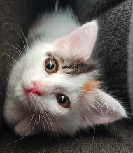Je ne sais pas pour vous, mais nous, on craque pour son beau pelage ! Certains disent même qu'elle serait tombée dans un pot de peinture ? Elle aura sans doute des longs poils !