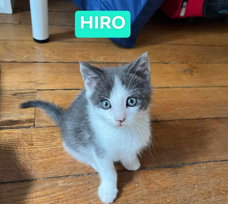 Hiro, dont le nom signifie "abondance" en japonais, est un chaton plein de vie et d'énergie. C'est un chaton gris et blanc très au poil doux comme sa mère. Il est très coquin et le plus charismatique de la troupe. Avec son tempérament joueur et espiègle, il apportera une dose de joie et d'amusement à votre foyer. Hiro est le genre de chaton curieux qui adore explorer chaque recoin de la maison, grimper aux meubles et chasser de petits jouets à plumes.