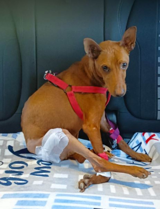 Il a été trouvé renversé dans une rue d'un bidonville avec une fracture du fémur qui a donc été opérée et dont il s'est très bien remis. Il est aussi positif à la leishmaniose et a reçu un traitement de glucantine. Une nouvelle prise de sang sera faite en août et est donc sous traitement allopurinol