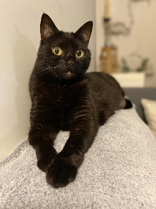Je suis une bonne pâte avec les humains, ils sont dotés de mains que j’apprécie particulièrement pour les caresses mais pas dans les bras. Très affectueuse, je me couche toujours aux pieds, ou à proximité. Je suis une chatte gourmet, je ronronne comme une pétroleuse quand c’est l’heure du repas. Le moment le plus important de la journée! Un peu d’eau fraîche, de croquettes (sans céréales), de pâtée et de courgette « je sais me satisfaire du nécessaire ». Mon embonpoint fait qu’il faudra me limiter dans les quantités et peut être m’empêcher de voler la nourriture.