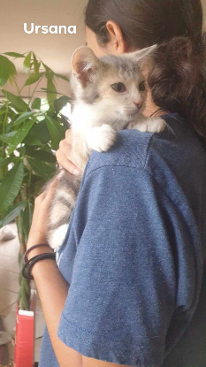 Ursana est une très jolie chatonne tricolore de 2 mois et demi, aussi douce que ses couleurs. Elle est posée et aime les ambiances calmes.
