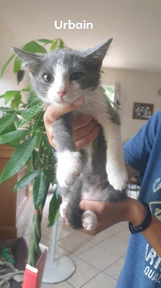 Urbain est un chaton de 2 mois et demi, très calme, qui vient facilement faire des câlins en ronronnant