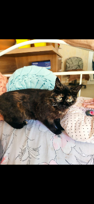 Lizzie est disponible à l'adoption. Cette chatte a environ 6 ans.