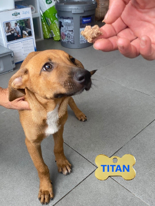 Titan est sociable avec les humains, les chiens et les chats. Il est à la fois calme et joueur, gourmand et demande de l’amour. Il est curieux et apprend vite.