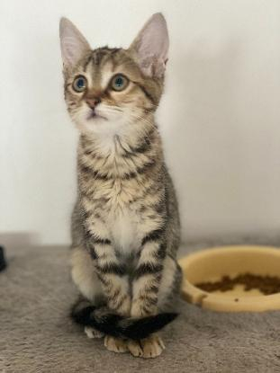 Je suis Perle petite femelle tigré, j'adore explorer mon environnement et j'aime beaucoup joué avec mon frère. Je suis maintenant très câline et me laisse prendre dans les bras. J'aime bien aussi le chien de ma famille d'accueil mais je préfère rester prudente.