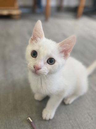 Uriel est une adorable petite boule de poils toute blanche qui vous fera forcément craquer dès lors que vous le rencontrerez. C'est un petit chaton plein de vie, très sociable qui n'hésitera pas à vous solliciter pour jouer mais aussi pour être câliné. Il est proche de l'homme et aime rester près de sa famille d'accueil. La propreté est acquise. Il est actuellement en famille d'accueil avec Udine.