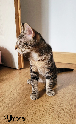 UMBRA, Femelle née le 17.03.2023; Couleur: Tigrée. Sœur d'URBAN