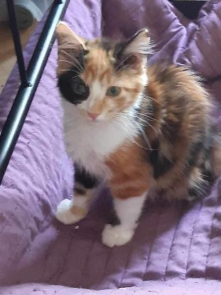 À présent en famille d'accueil en région parisienne, nous lui cherchons un foyer pour la vie, ce n'est pas un chat d'apparat ni une peluche, il faut lui porter attention, la dorloter et la sécuriser.