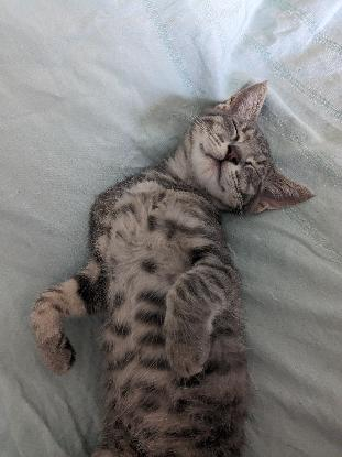Je suis un très joli chaton de 3 mois. Mon pelage entièrement gris et tigré vous fera craquer ! Plus tard, je serai un très beau chat.