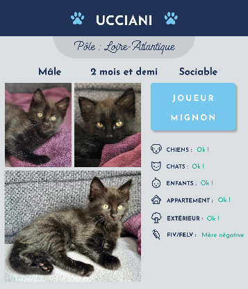 Bonjour, moi c'est Ucciani. Je suis un petit mâle de 2 mois et demi. J'adore jouer, courir et bien sûr dormir. J'ai hérité des poils mi-longs de ma maman. N'hésitez pas à venir faire ma connaissance.