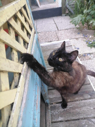 HISTOIRE : GAUFRETTE est issue d’une colonie de chats qui, non-stérilisés, se sont reproduits en bien trop grand nombre. Les humains étant dépassés par cette situation, la mairie nous a demandé de prendre GAUFRETTE en charge.