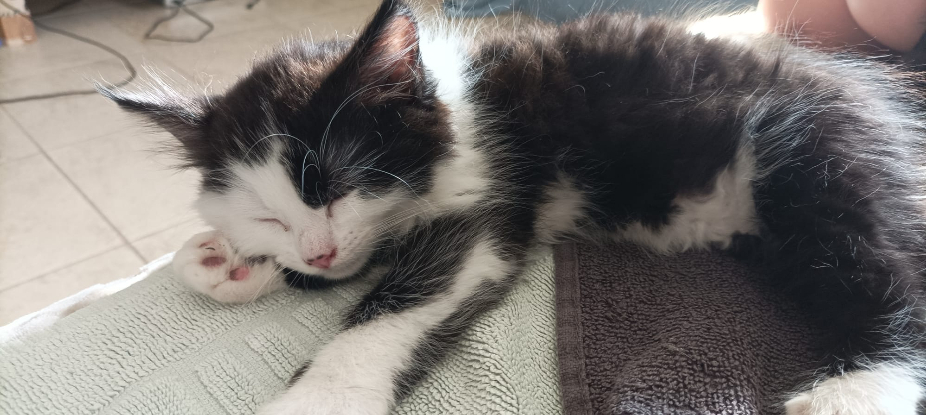 Ponyo est l'aventurière de la fratrie. C'est une boule de poil au pelage très doux, elle est très propre. Elle est curieuse et très joueuse, elle adore se cacher mais les câlins ne sont pas encore sa priorité. Le processus de socialisation n'est pas encore terminé, elle progresse de jours en jours.