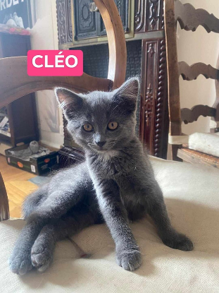 Cléo est la petite vedette de la fratrie. Sûre de soi, joueuse et un moulin à ronrons, cette chatonne fera craquer sa nouvelle famille dès le premier câlin. Cette petite reine ne manque pas de curiosité ni d’amour pour les êtres humains, mais il lui faudra un copain chat pour finir sa bonne éducation et l’aider à devenir un chat adulte bien élevée. Si vous souhaitez une (ch)amie pot-de-colle, ne cherchez plus!