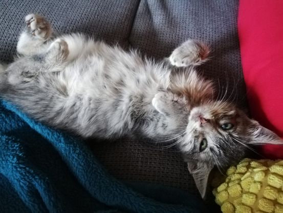 Mustie est une adorable minette trouvée seule sur un rond point. La présence d'enfants affectueux et joueurs sera un plus dans le futur foyer de la demoiselle. Elle est également OK chat