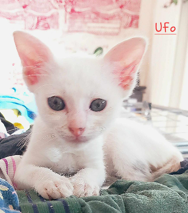 Bonjour les humains, je suis Ufo j'ai tout juste 2 mois. J'avais à peine 5 jours quand j'ai été trouvé avec mon frère et notre maman d’accueil a pris soin de nous jusqu’à maintenant. Nous sommes donc très proches des humains et prêts à trouver notre famille pour la vie entière ?
