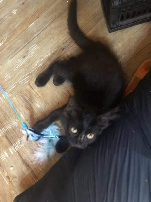 Rebelle est une très jolie minette de 3 mois, toute noire avec des poils mi-longs.
