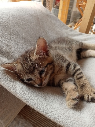 UMIA est une chatonne tigrée, trouvée dans un centre équestre avec mon frère Ut