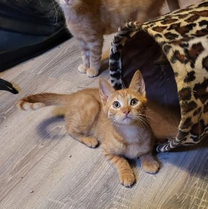 Adorable petit chaton roux joueur et très ronron, proche de l'humain et sociable avec ses congénères