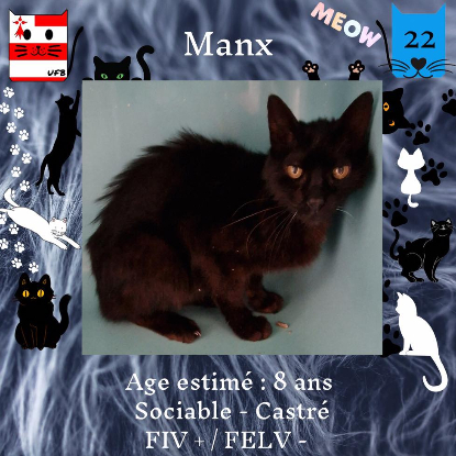 Manx, mâle de 8 ans sociable Fiv+ qui vous attend dans une fourrière du 22. ATTENTION SORTIE AU PLUS TARD LE 11/08/2023 (avant euthanasie) !