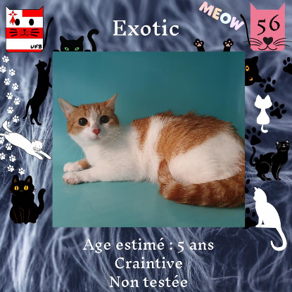 Exotic, femelle de 5 ans craintive (un comportement normal en fourrière) qui vous attend dans une fourrière du 56. ATTENTION SORTIE AU PLUS TARD LE 11/08/2023 (avant euthanasie) !