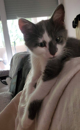 Je viens d’une fratrie toute cozy et calme. Fait assez rare : nous avons tous la même robe (gris et blanc) !