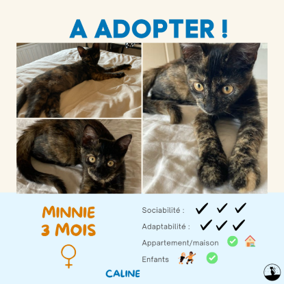 Très attendrissante, Minnie est une chatoune pleine de vie et d’amour Très joueuse, elle vous réclamera de jouer avec elle pour des cessions endiablées ! Joueuse, gourmande, mais aussi câline, elle est très démonstrative et se plaît énormément à ronronné blottie contre son humaine.