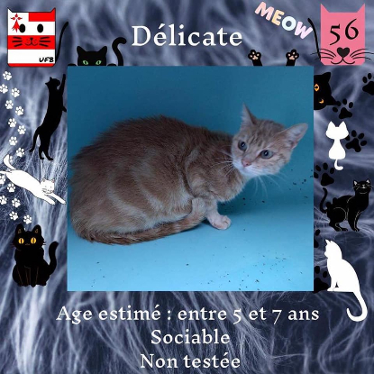 Délicate, femelle de 5-7 ans sociable qui vous attend dans une fourrière du 56. ATTENTION SORTIE AU PLUS TARD LE 11/08/2023 (avant euthanasie) !