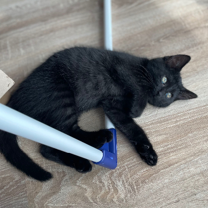 Nouchka est une petite minette indépendante et téméraire. Elle ne se laisse pas faire par les grands chats qui ne l'impressionnent pas. Sa passion, c'est jouer et chasser ! Elle aime aussi beaucoup se chamailler avec son frère, ce qui ne l'empêche pas de s'adonner, quelquefois, à des courtes séances de câlins.