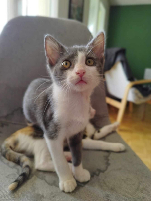 Jeune chaton de 4 mois, adorable et très câlin, il aura besoin de présence au domicile !