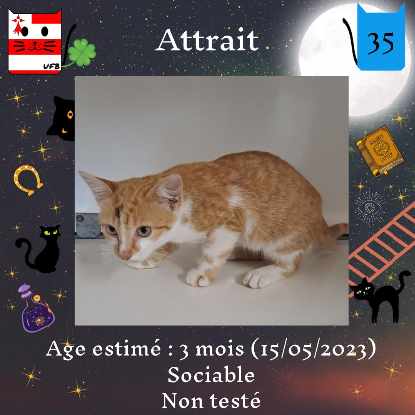 Attrait, mâle de 3 mois sociable qui vous attend dans une fourrière du 35. ATTENTION SORTIE AU PLUS TARD LE 18/08/2023 (avant euthanasie) !